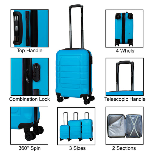 Hard Shell ABS Suitcase With Combination Lock 4 Wheels Light Blue