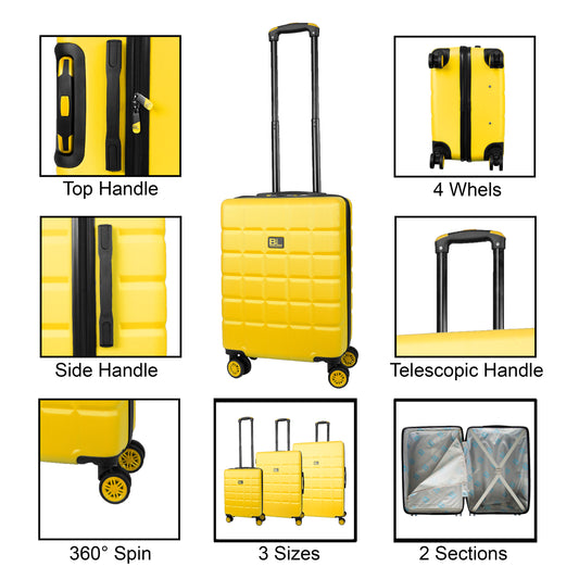 Hard Shell Luggage with 4 Spinner Wheels, Yellow
