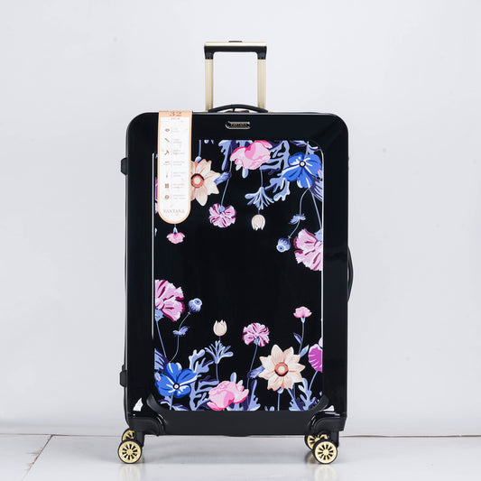 Suitcase Hard Shell with Flowers Black