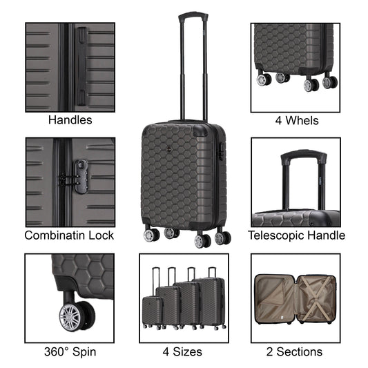 Hard Shell Luggage with 4 Spinner Wheels, Dark Grey