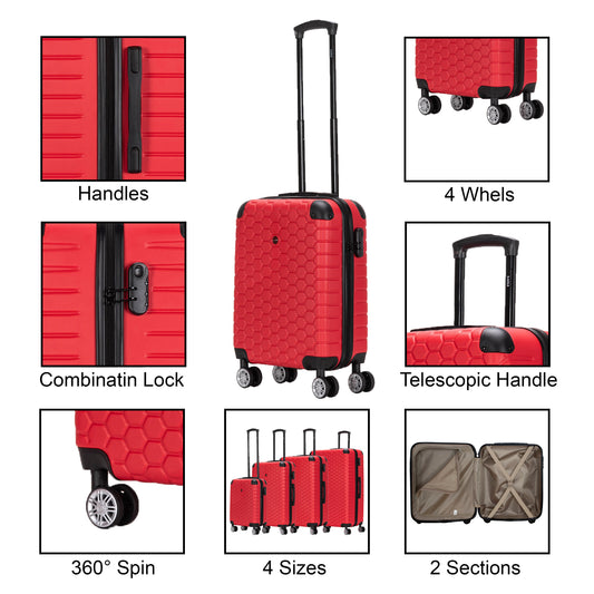ABS Hard Shell Suitcase With Combination Lock 4 Wheels Black
