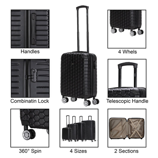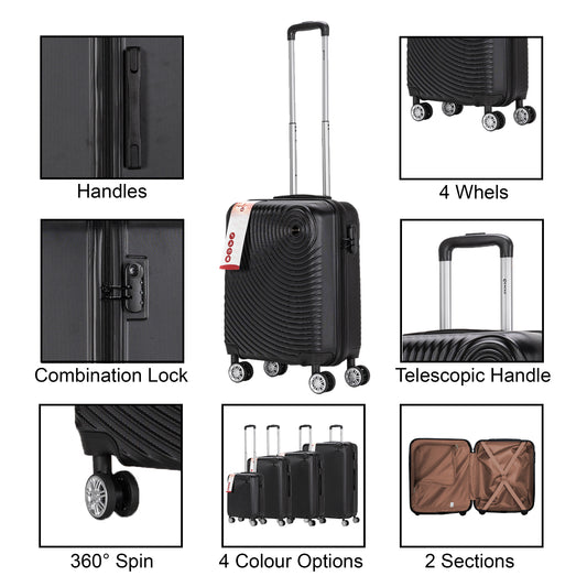 Hard Shell ABS Suitcase With Combination Lock 4 Wheels Black