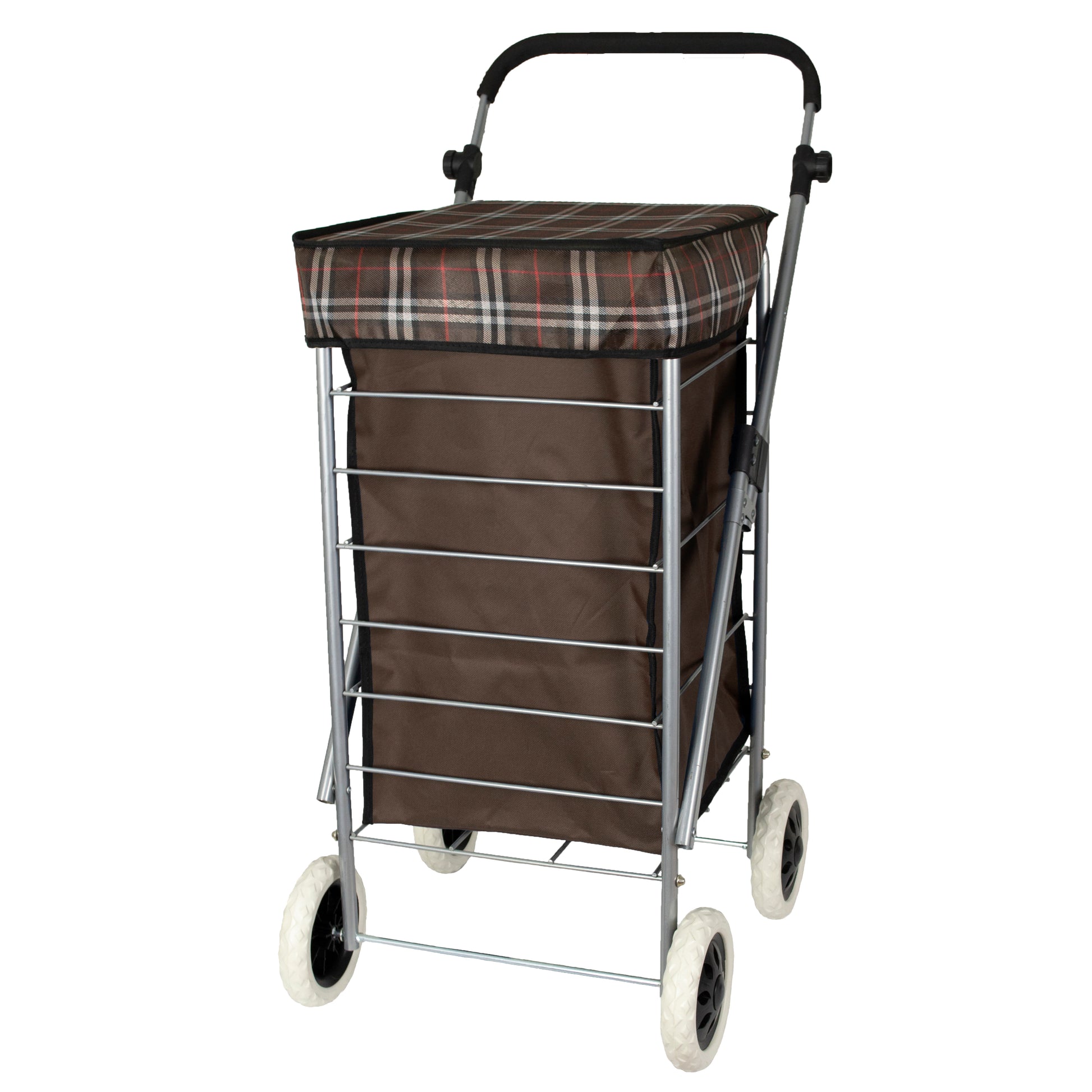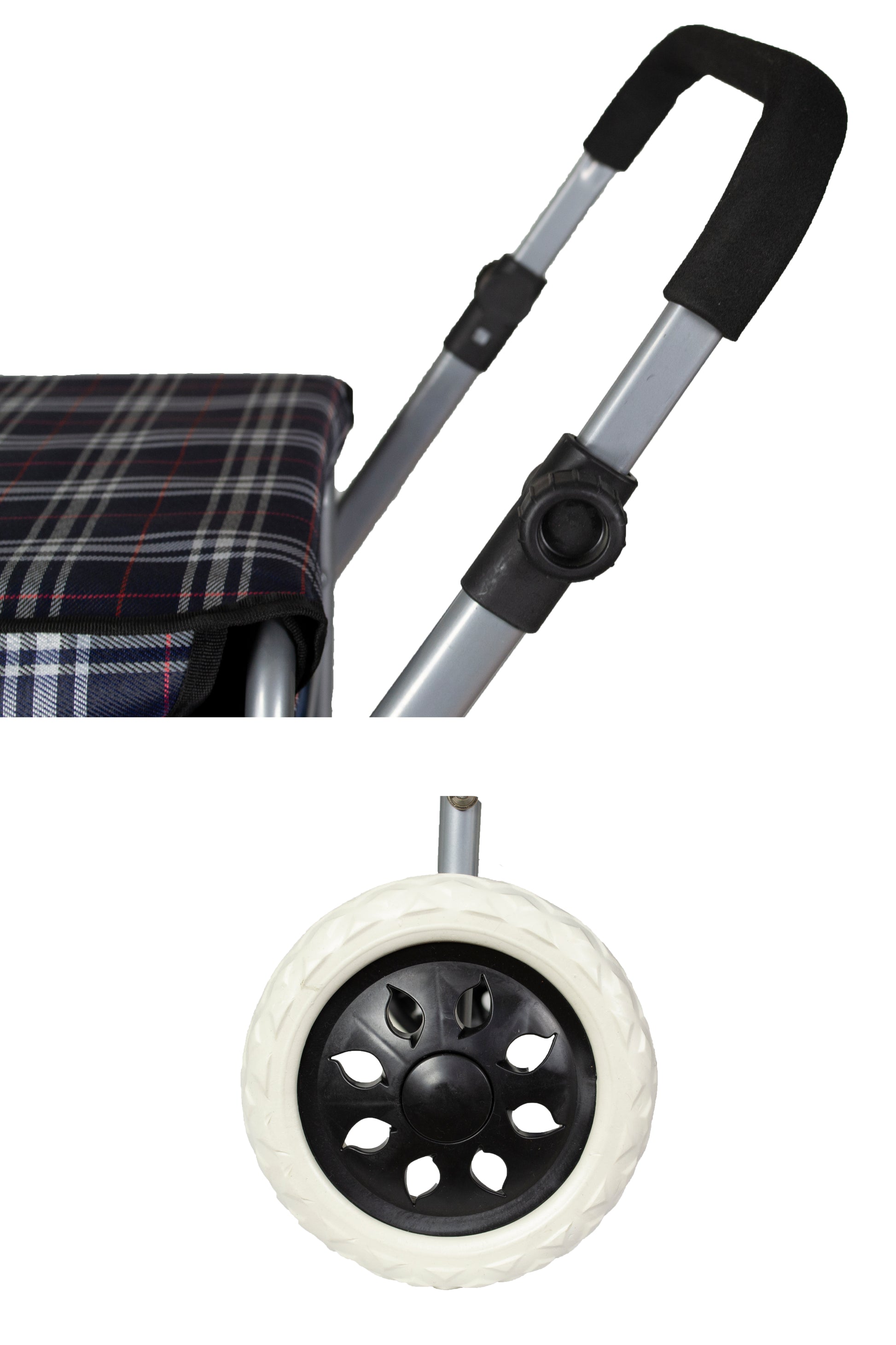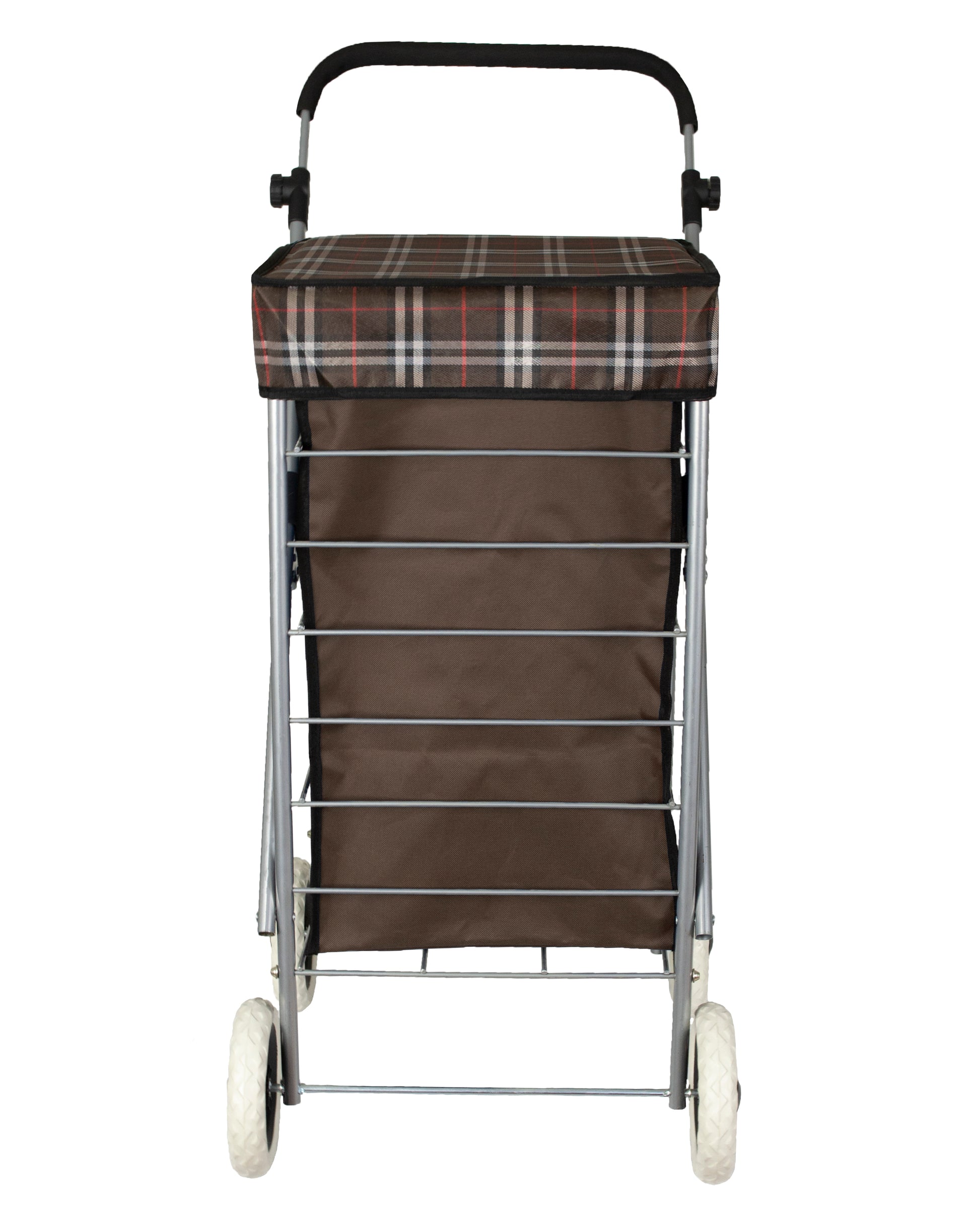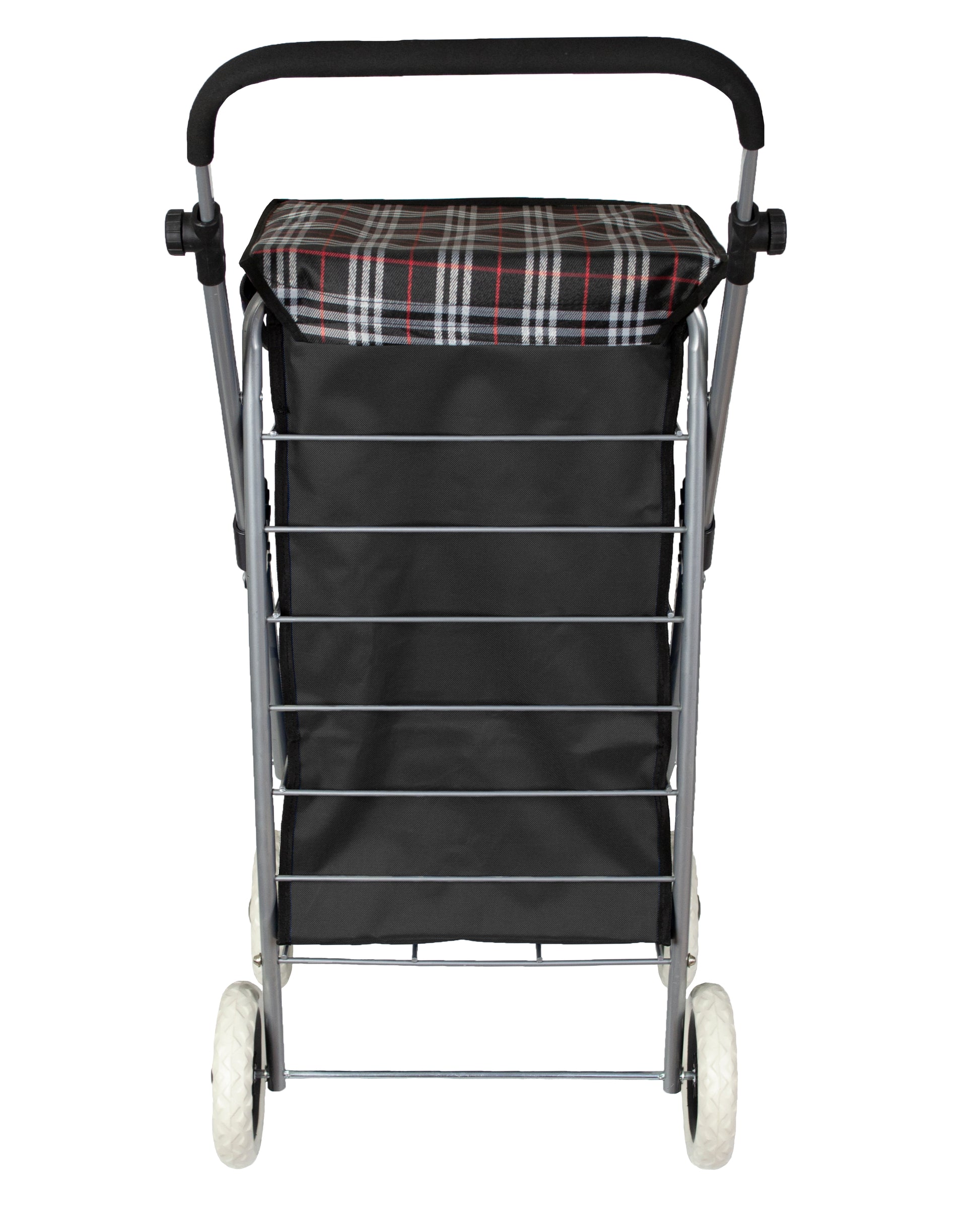 A good helper for your heavy or bulky shopping. With a foam grip handle and weather-shield flap, shopping in any weather will soon become a doddle. Including 54L capacity the lightweight metal trolley frame is simple to pull to and from shops. It has 4 wheels instead of the usual 2 making it more stable and easy to use: can be pulled or pushed.