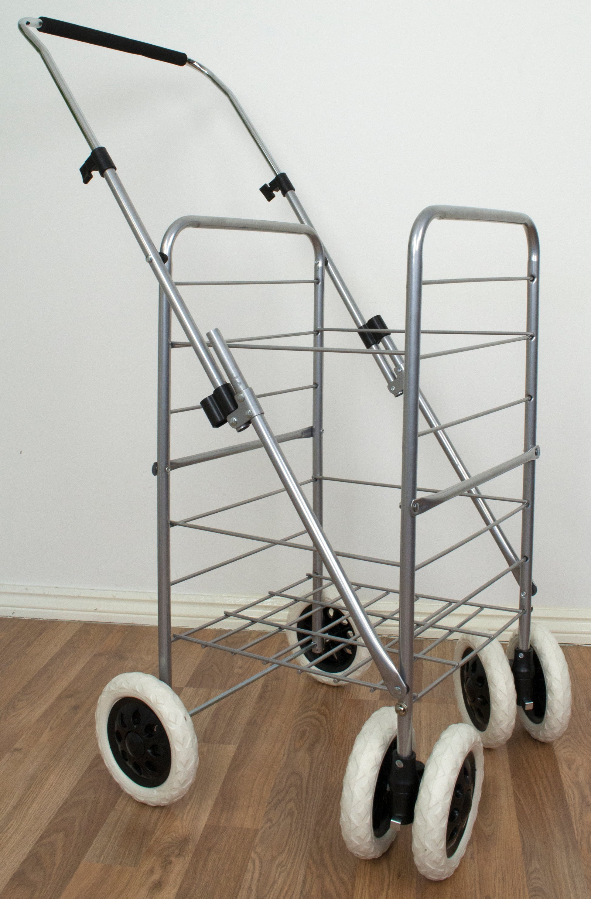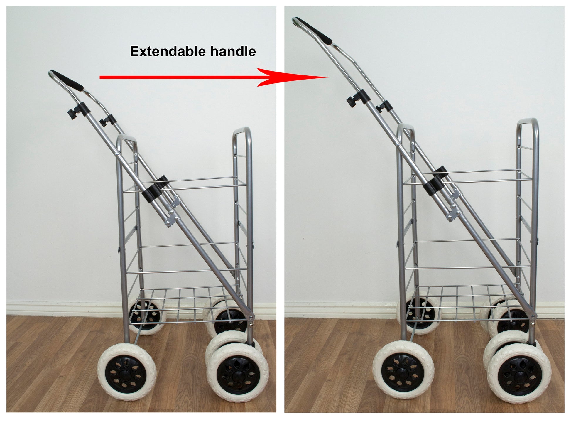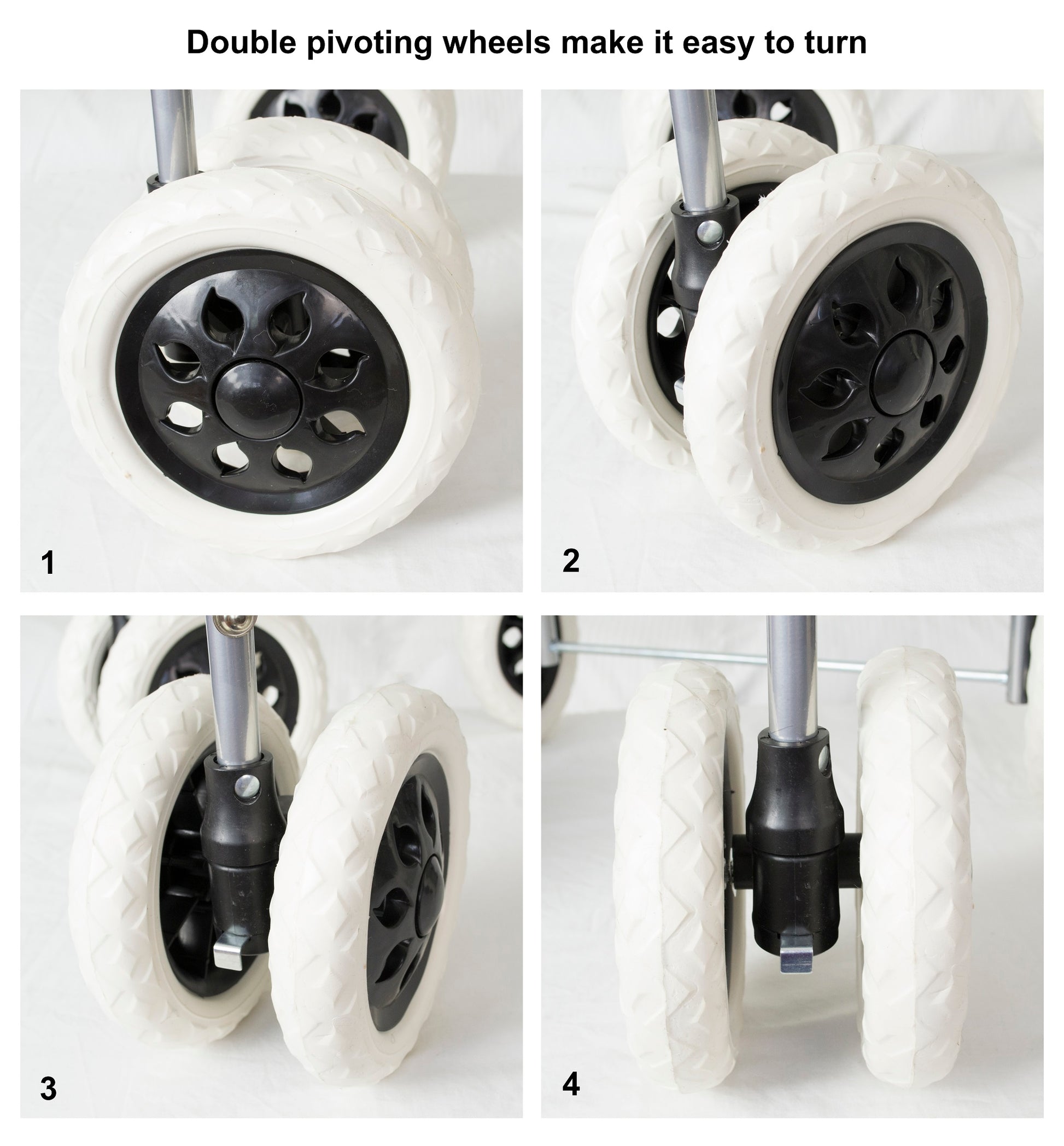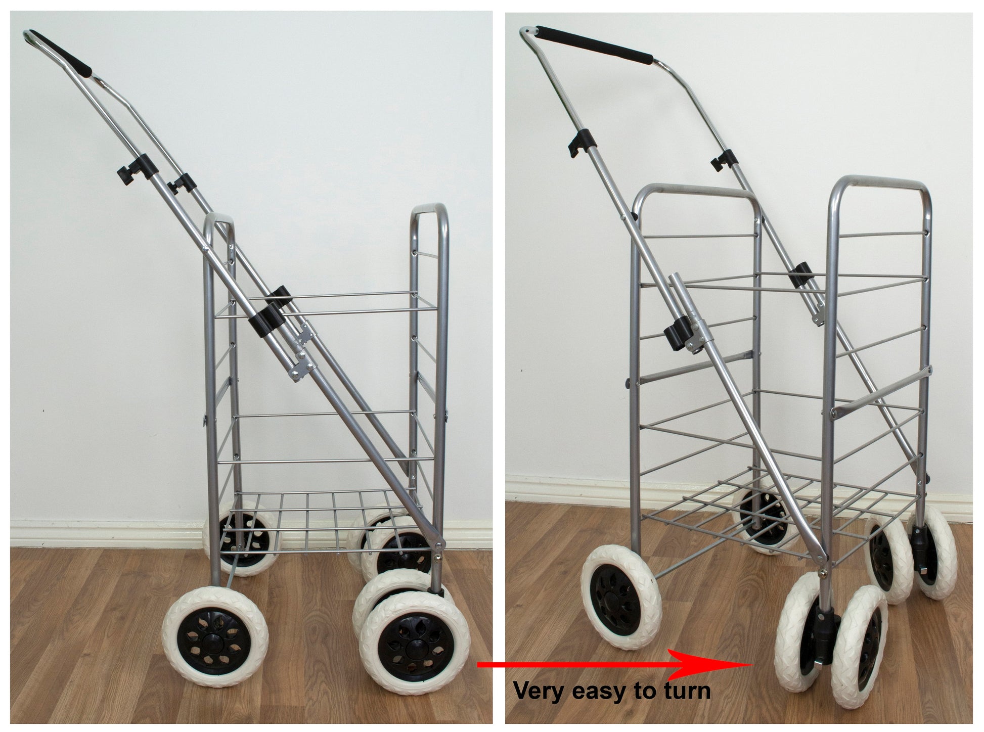 A good helper for your heavy or bulky shopping. With a foam grip handle and weather-shield flap, shopping in any weather will soon become a doddle. Including 54L capacity the lightweight metal trolley frame is simple to pull to and from shops. The 360 degree front spinner wheels will make your shopping experience much easier.