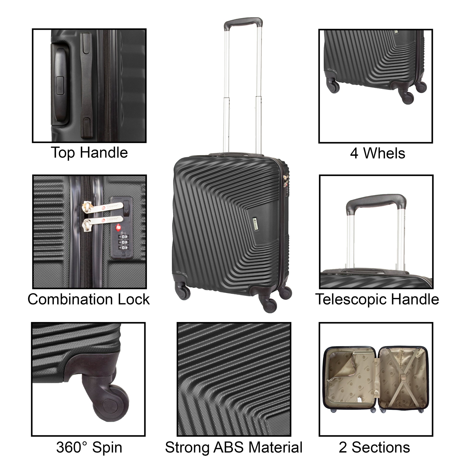 Cabin Size ABS Suitcase Hard Shell Luggage 20"