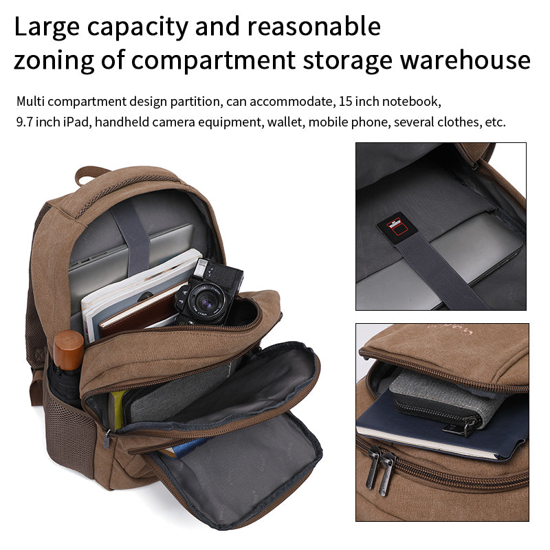 Modern backpack, great to carry laptop, iPad, books, water bottle, foldable umbrella, change of clothes and everyday items. Boasting large capacity, this backpack comprises of 3 main compartments and multiple inner pockets.