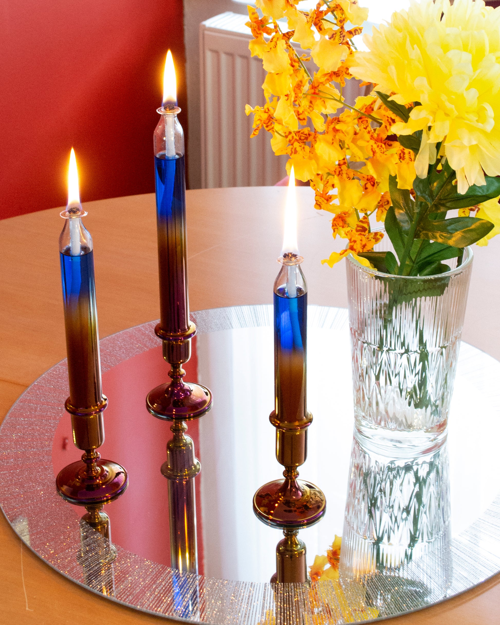 Our unique glass oil lamps are handcrafted and mouth-blown by a talented master glassmaker. A delicate-looking but durable product, it gives a warm, welcoming light.