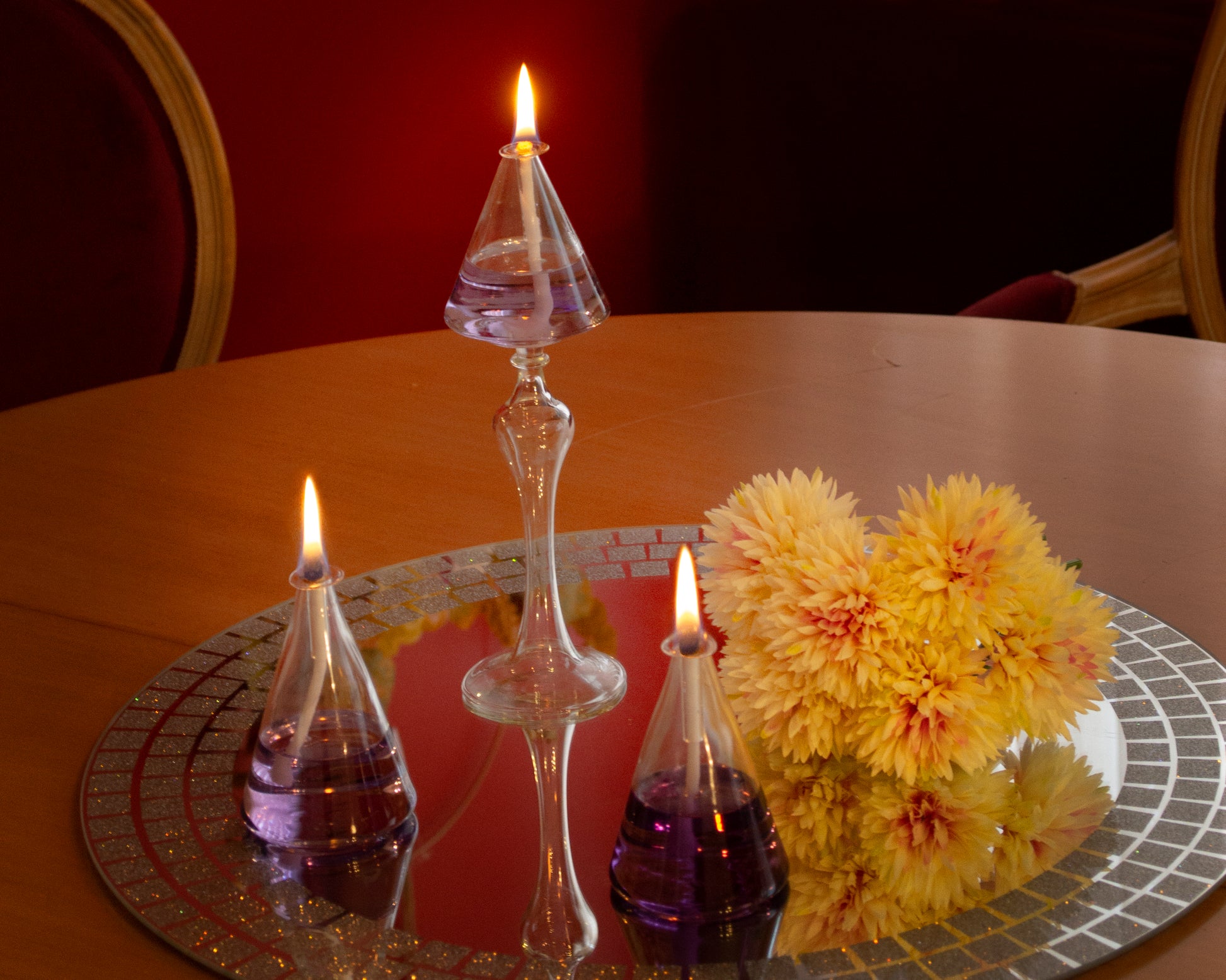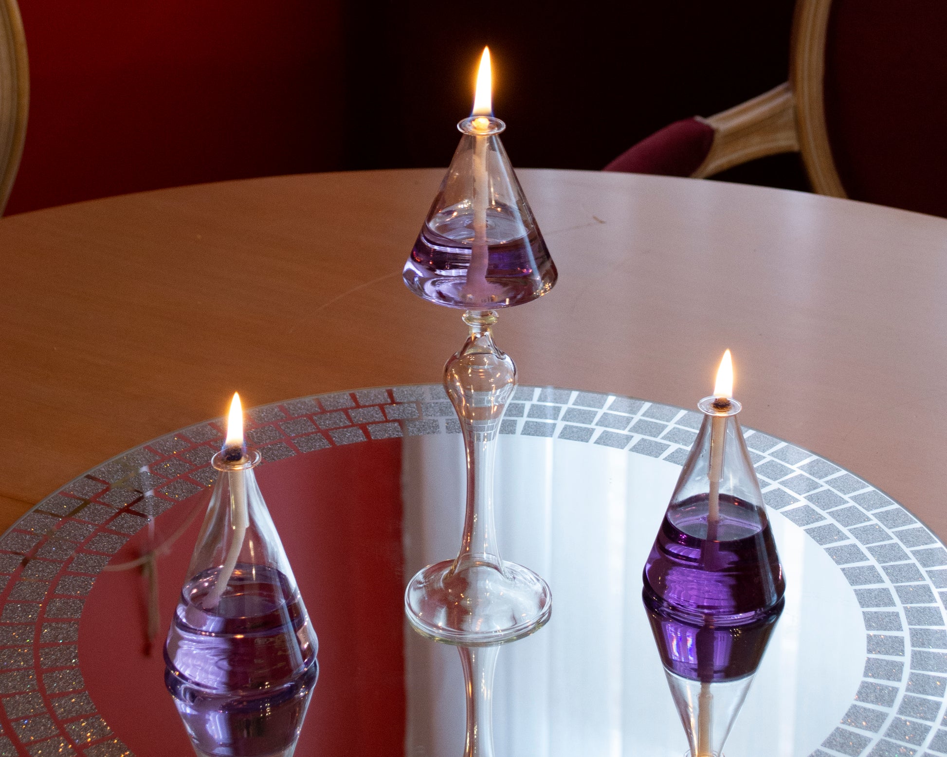 Our amazing glass oil lamps will bring a touch of charm and warmth to your room, giving it an elegant and timeless ambient light. Whether you prefer a classic style or a more modern, minimalist aesthetic, the delicate, transparent lamps will perfectly complement your décor. They will harmonise seamlessly in your living room, on the dining table, the garden table or the windowsill.