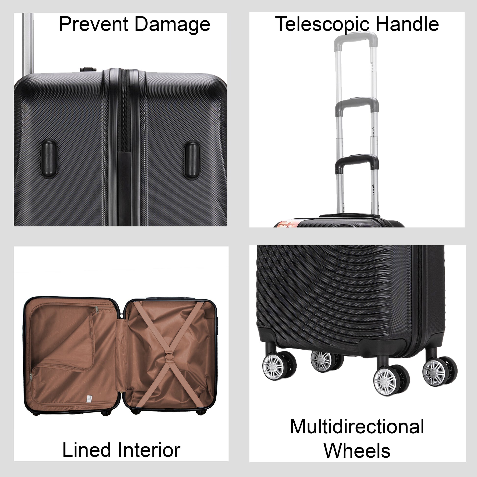 TRANSPORT COMFORT: This travel suitcase designed with 4 spinner wheels providing a full 360 degrees of manoeuvrability , which will make your trip easier and enjoyable. Feature a three level height-adjustable retractable handle and a comfort grip for ease of use.