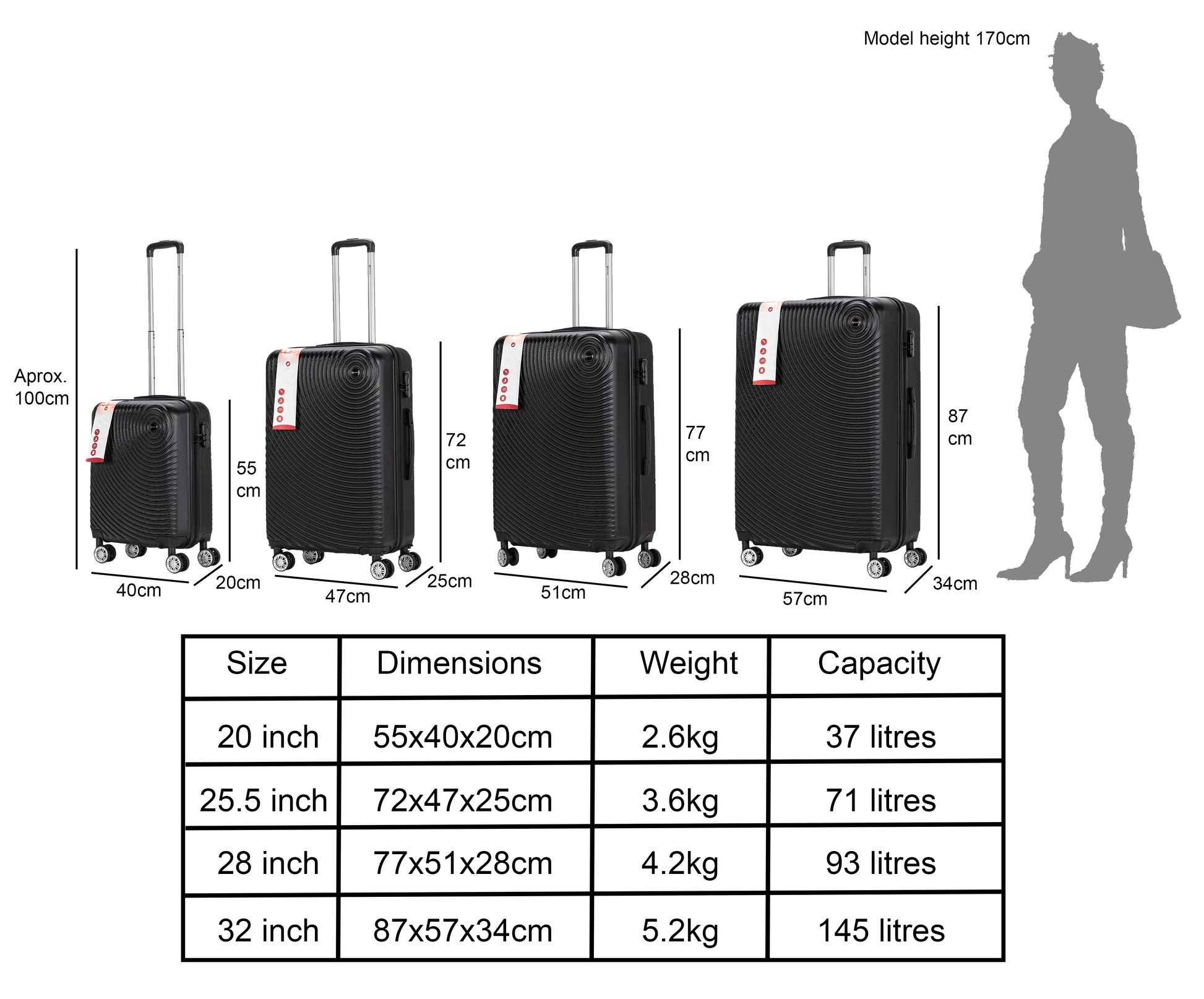 SIZE: This hard case luggage is compatible with over 100 airlines operating in the UK and around the globe. Including Ryanair, British Airways, KLM, Virgin Atlantic, Emirates, Delta, Jet2 and so on. So whether you're flying for business or weekend short stays, this stylish suitcase will be your best choice for your every trip.