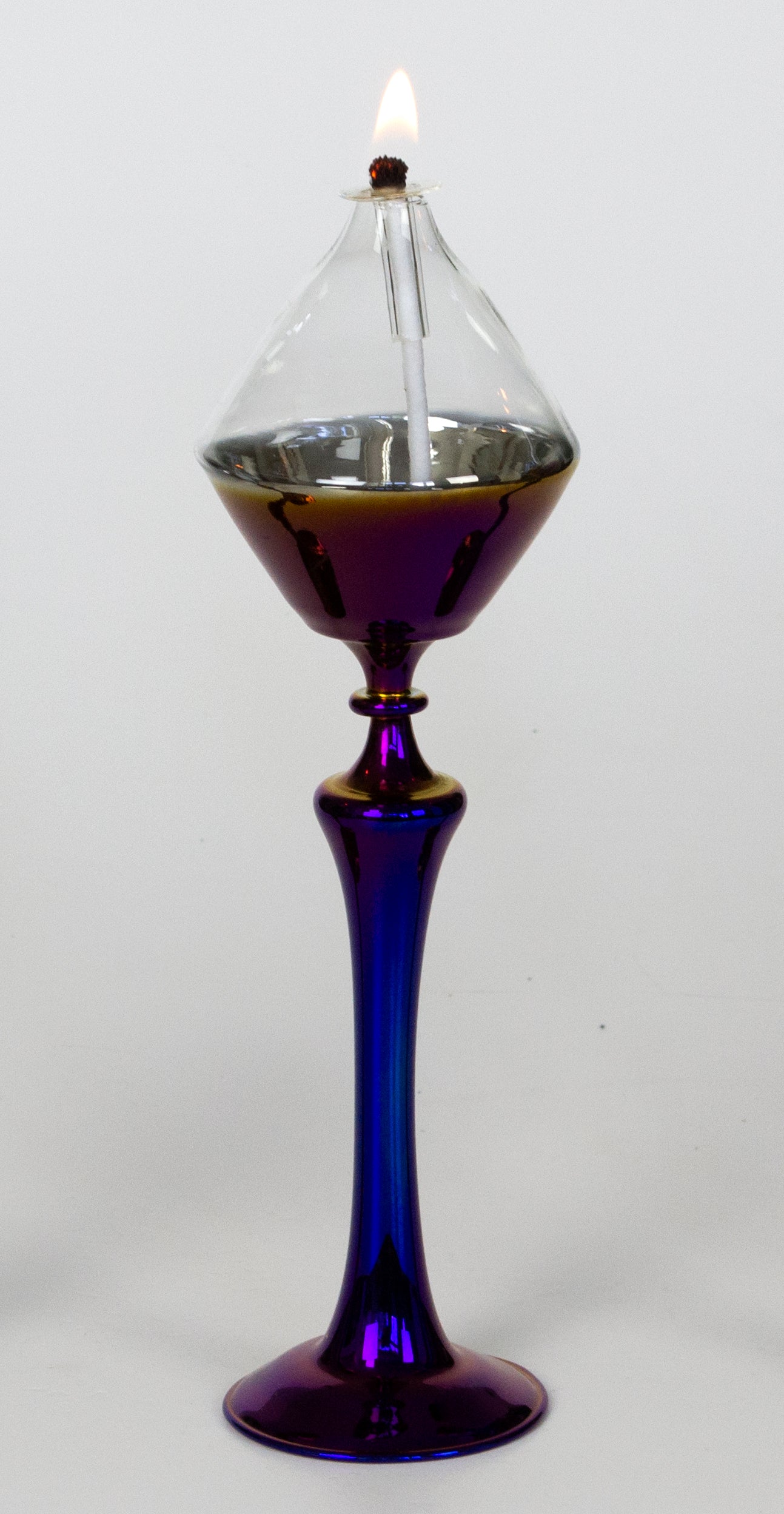 Our unique glass oil lamps are handcrafted and mouth-blown by a talented master glassmaker. A delicate-looking but durable product, it gives a warm, welcoming light.
