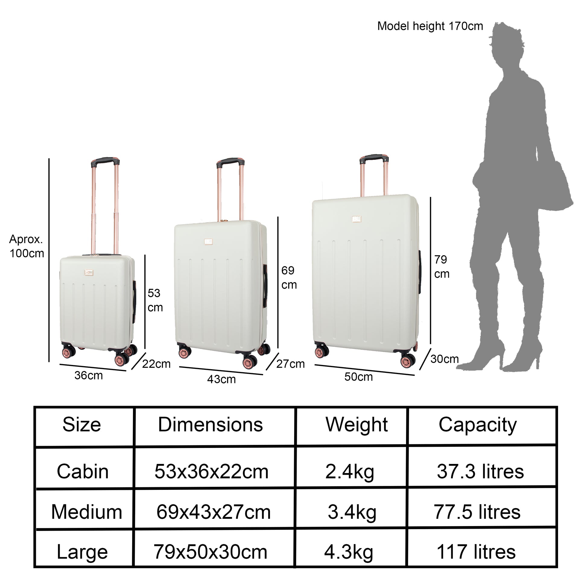 SIZE: This hard case luggage is compatible with over 100 airlines operating in the UK and around the globe. Including Ryanair, British Airways, KLM, Virgin Atlantic, Emirates, Delta, Jet2 and so on. So, whether you're flying for business or weekend short stays, this stylish suitcase will be your best choice for your every trip.
