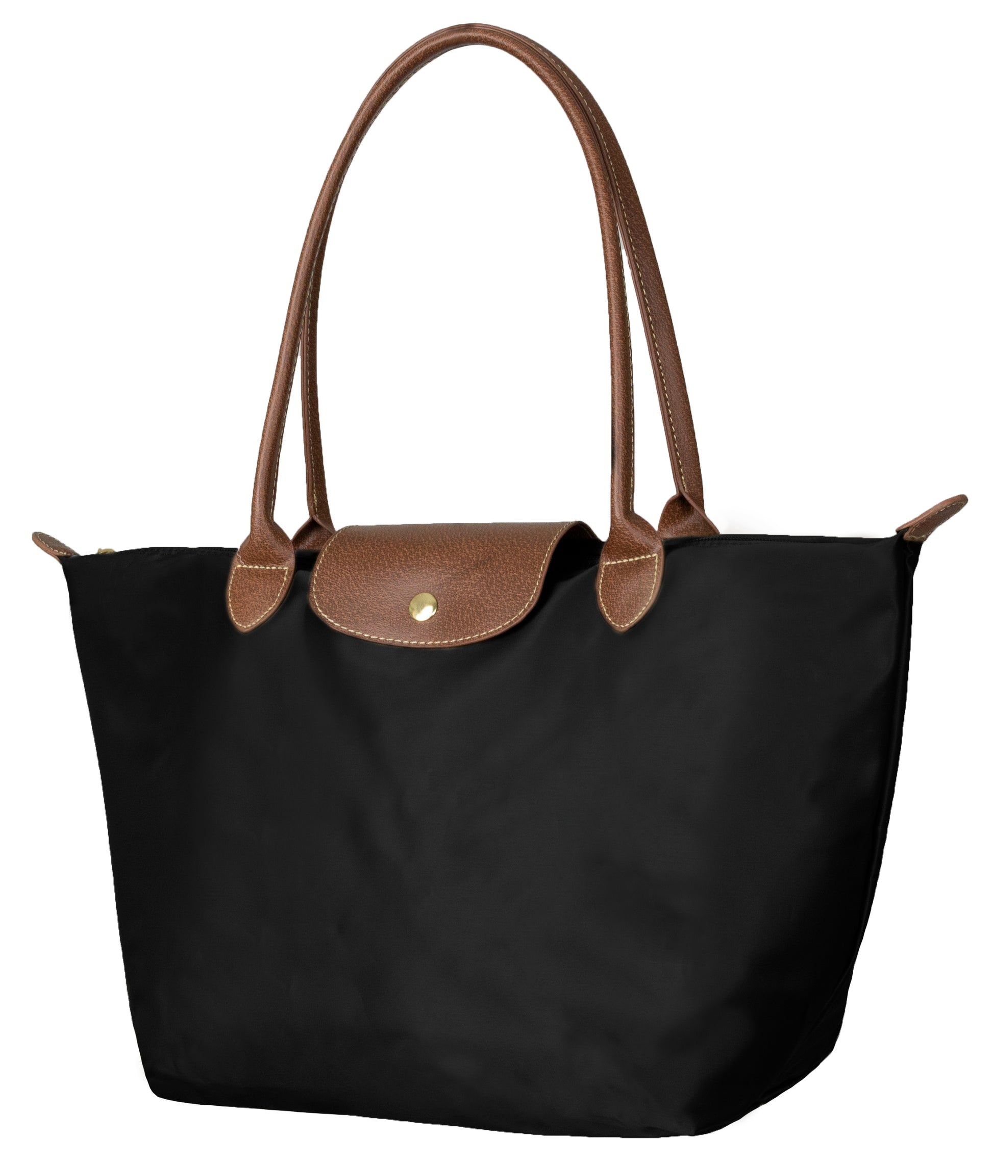 Very lightweight tote bag that can hold iPads, books, water bottles, foldable umbrellas and everyday items. Comprises of 1 main compartment and 1 slip pocket inside. Easy to carry, great for shopping, holidays, work, university or everyday use. Showerproof, lightweight, durable. Made of polyester and faux leather. Size: 45(L)x32(H)x19(W)cm. Size folded: 24(L)x15(H)x2(W)cm. Notes: Due to the light and screen setting difference, the colour of the item may be slightly different from the pictures. Please allow slight dimension difference due to different manual measurement.