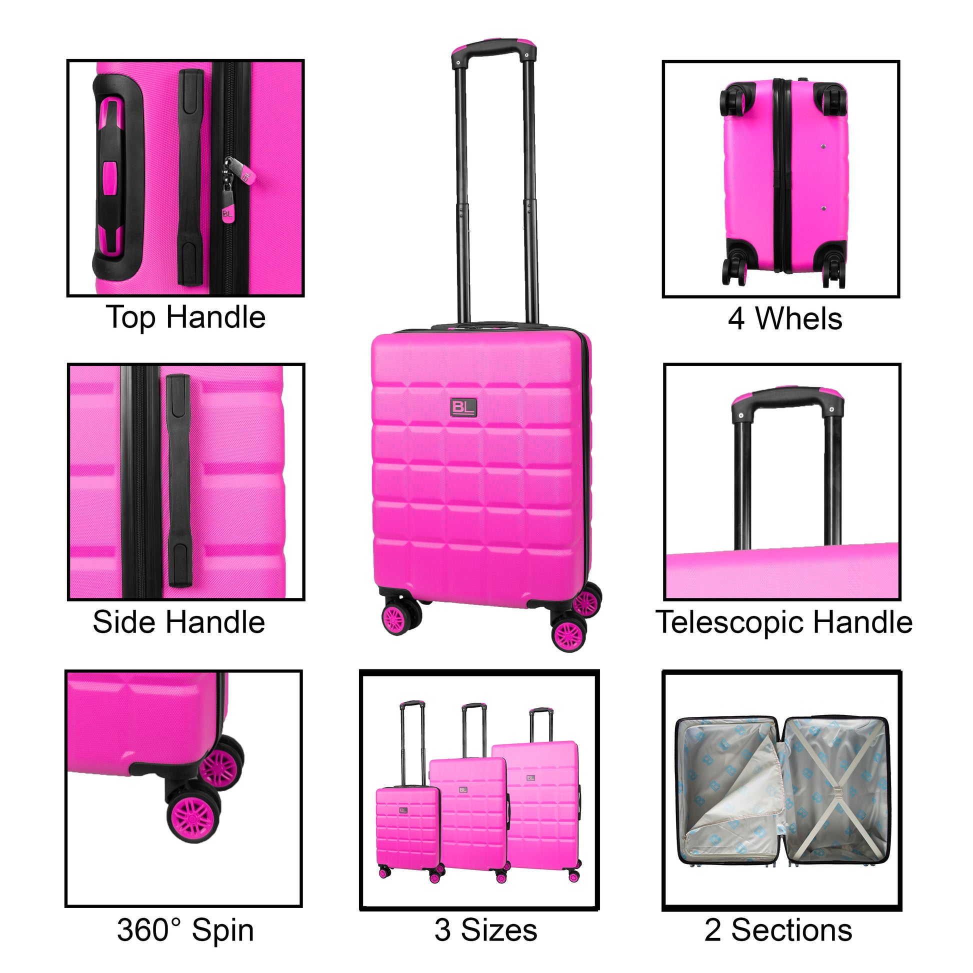 Hard Shell Luggage with 4 Spinner Wheels, Pink