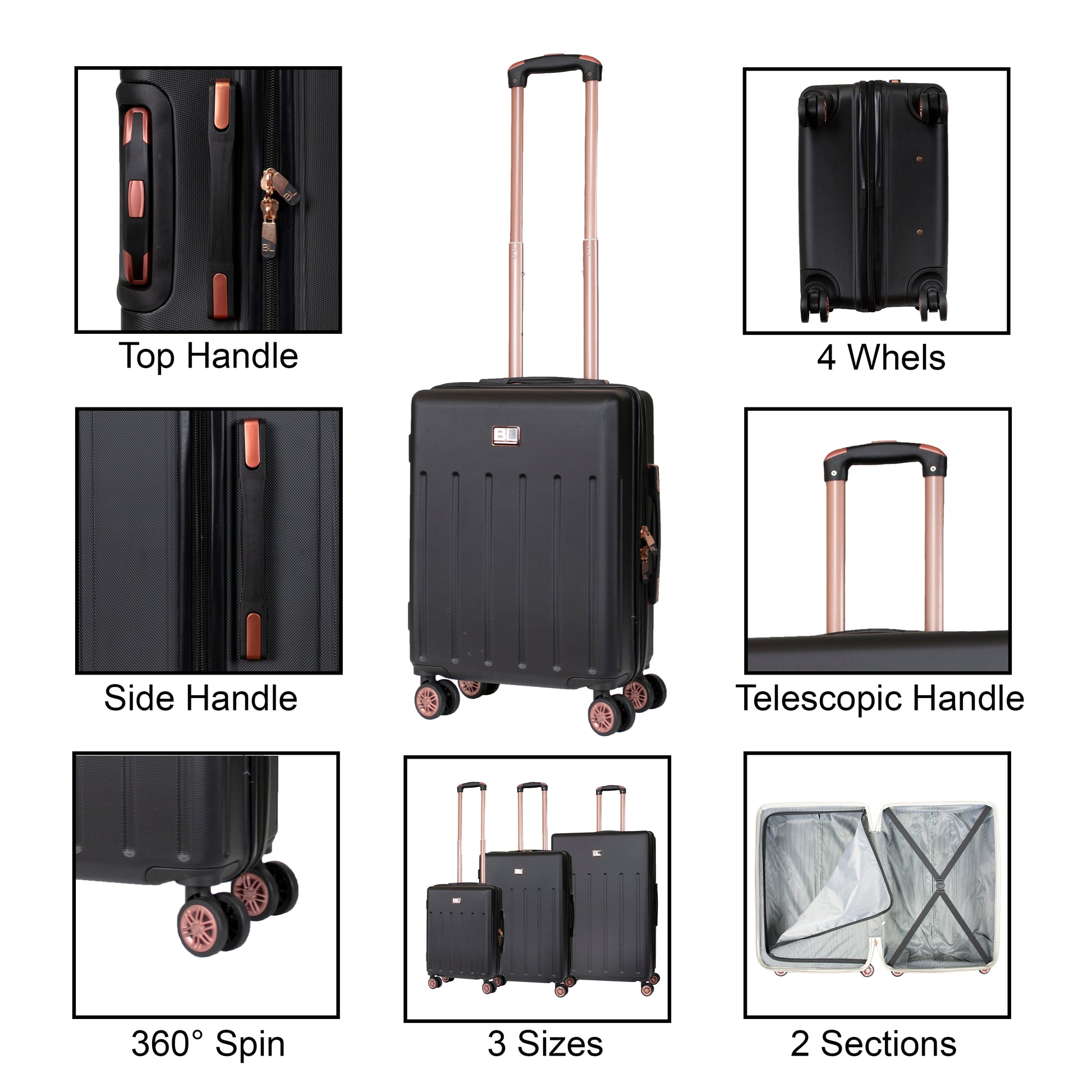TRANSPORT COMFORT: This travel suitcase designed with 4 spinner wheels providing a full 360 degrees of manoeuvrability, which will make your trip easier and enjoyable. Feature a three-level height-adjustable retractable handle and a comfort grip for ease of use.