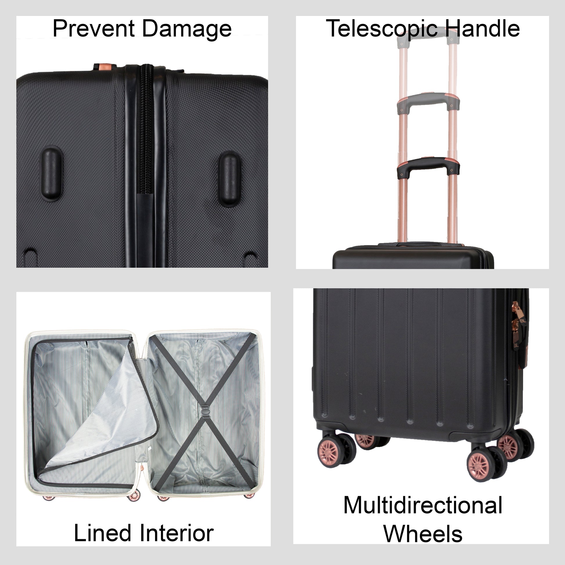 MATREIAL: The hard shell is made of high-quality plastics, the texture is extremely scratch-resistant, lightweight and durable, keeping the suitcase still beautiful trip after trip.