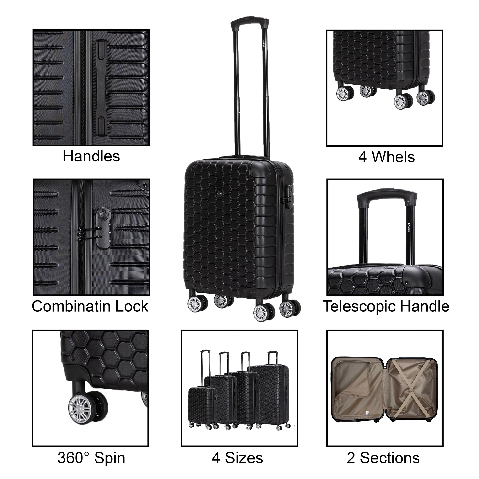 TRANSPORT COMFORT: This travel suitcase designed with 4 spinner wheels providing a full 360 degrees of manoeuvrability , which will make your trip easier and enjoyable. Feature a three level height-adjustable retractable handle and a comfort grip for ease of use.