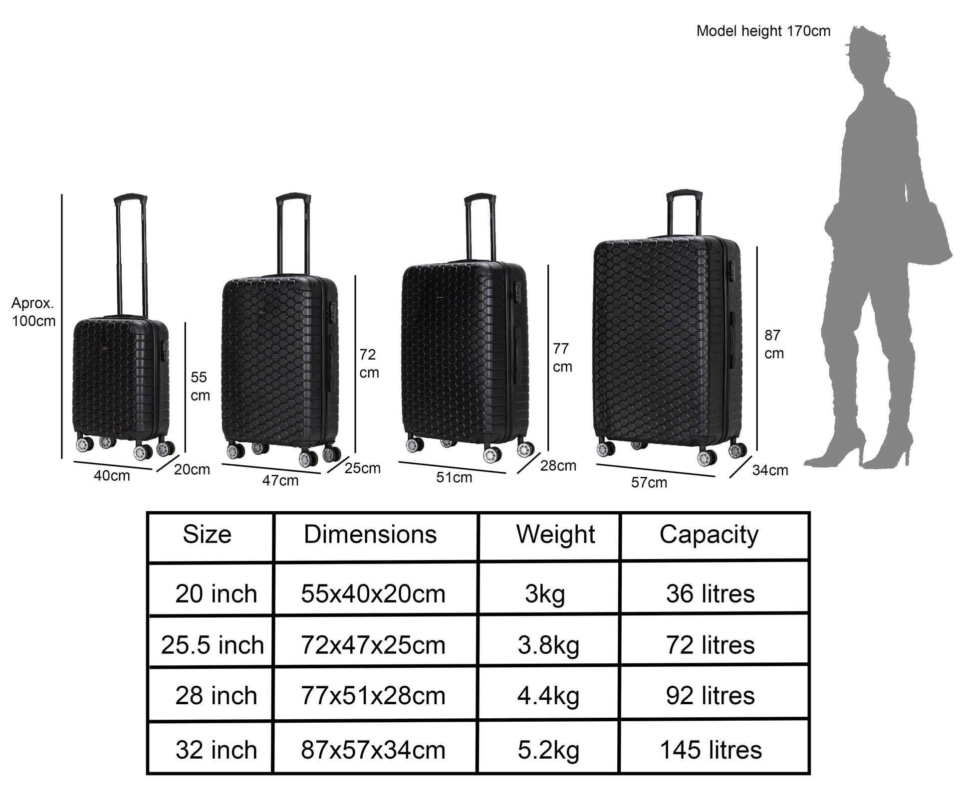 SIZE: This hard case luggage is compatible with over 100 airlines operating in the UK and around the globe. Including Ryanair, British Airways, KLM, Virgin Atlantic, Emirates, Delta, Jet2 and so on. So whether you're flying for business or weekend short stays, this stylish suitcase will be your best choice for your every trip.