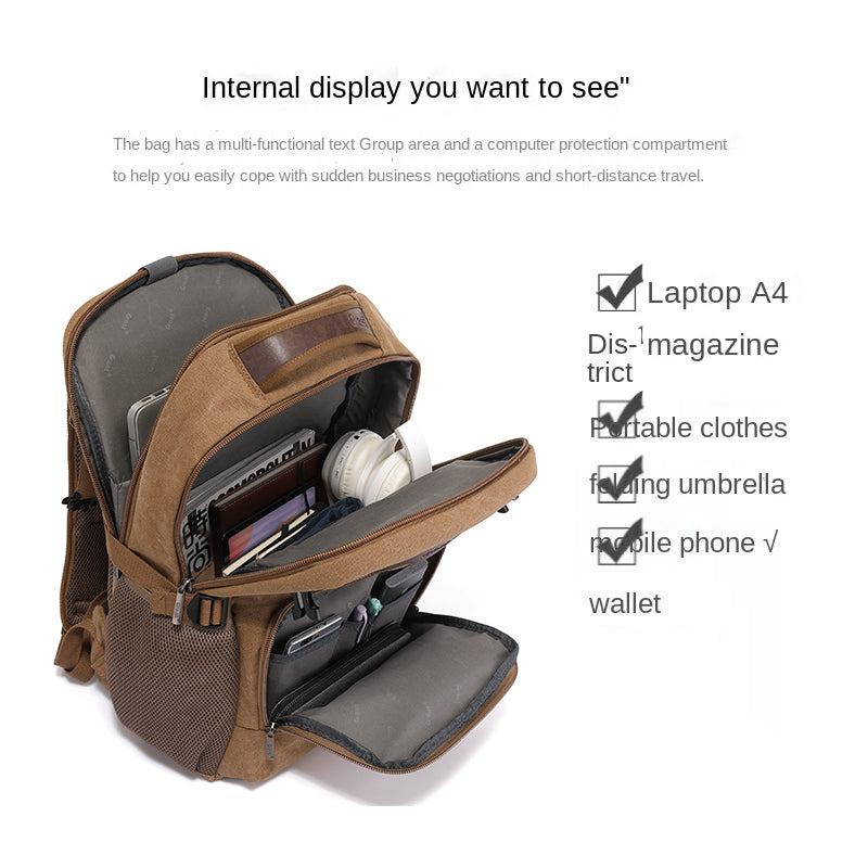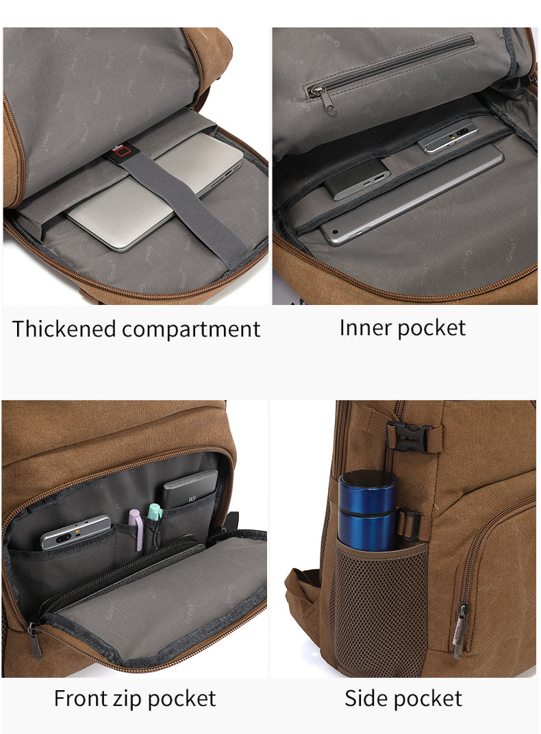 Modern backpack, great to carry laptop, iPad, books, water bottle, foldable umbrella, change of clothes and everyday items. Boasting large capacity, this backpack comprises of 3 main compartments and multiple inner pockets.